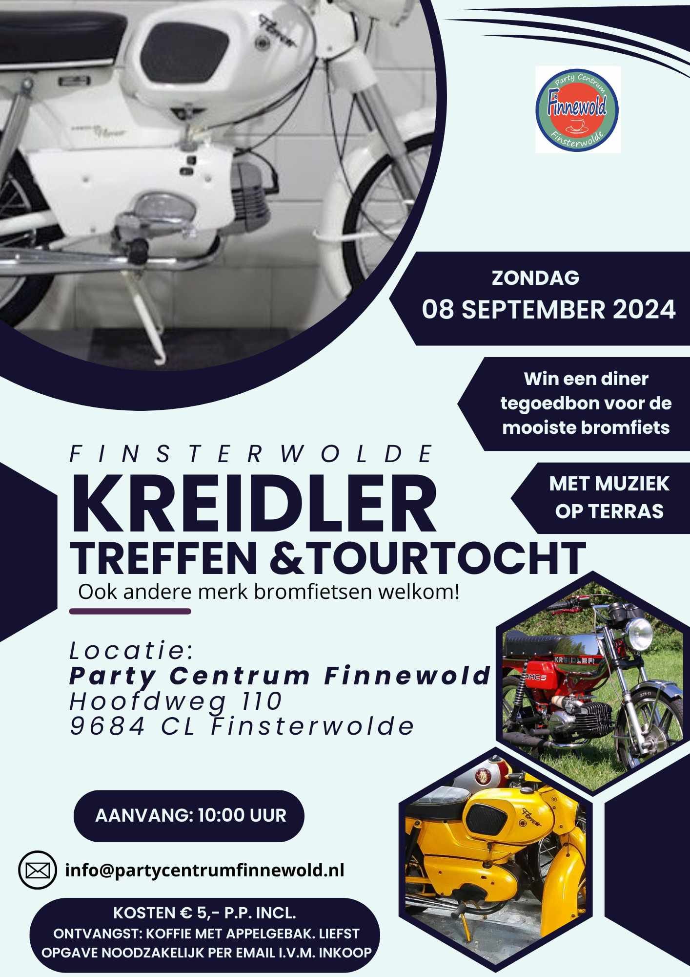 Er zal ook een mooiste bromfiets worden gekozen, die wint een diner waardebon voor 2 personen bij Party Centrum Finnewold.